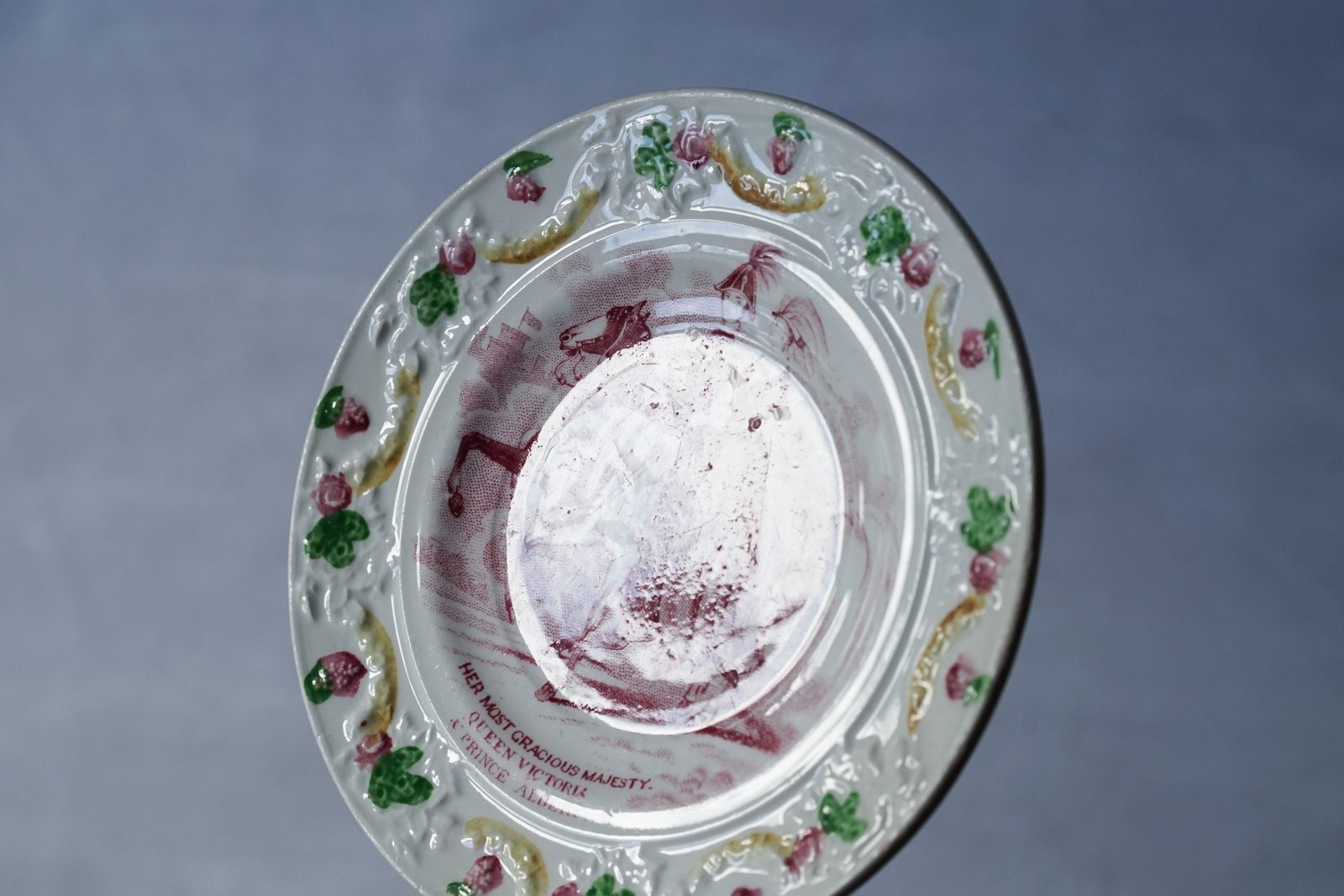 リムの花綱レリーフもかわいい ヴィクトリア女王&アルバート公成婚記念ソーサー 1840年のもの
