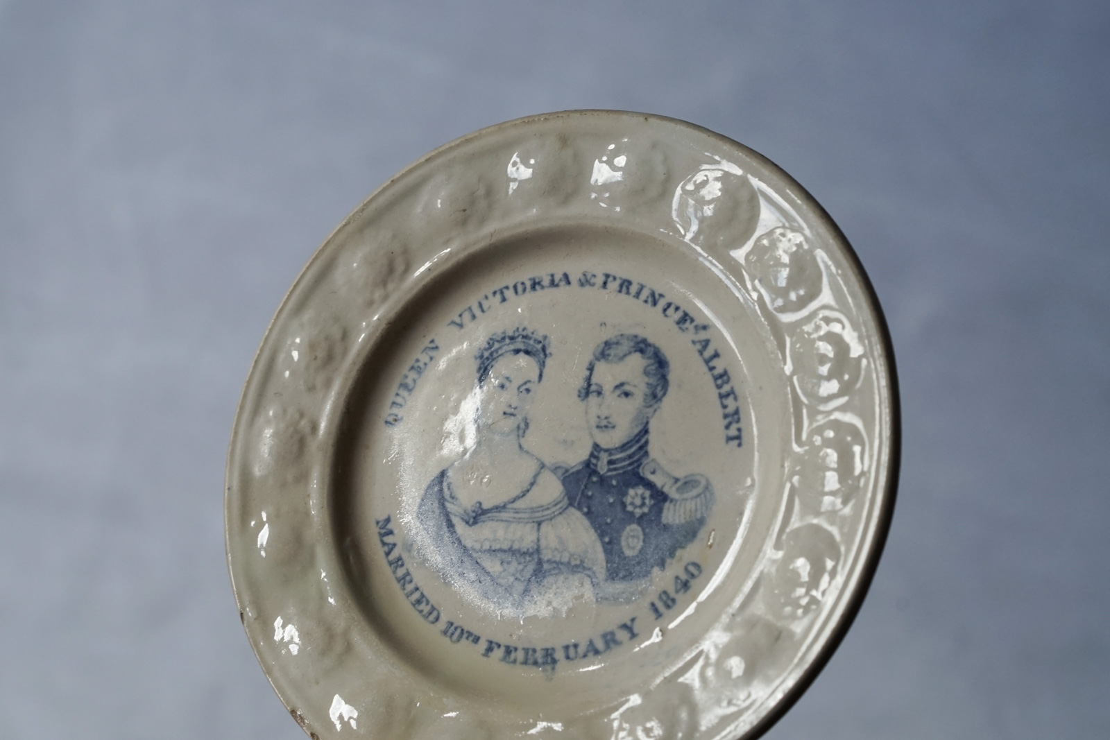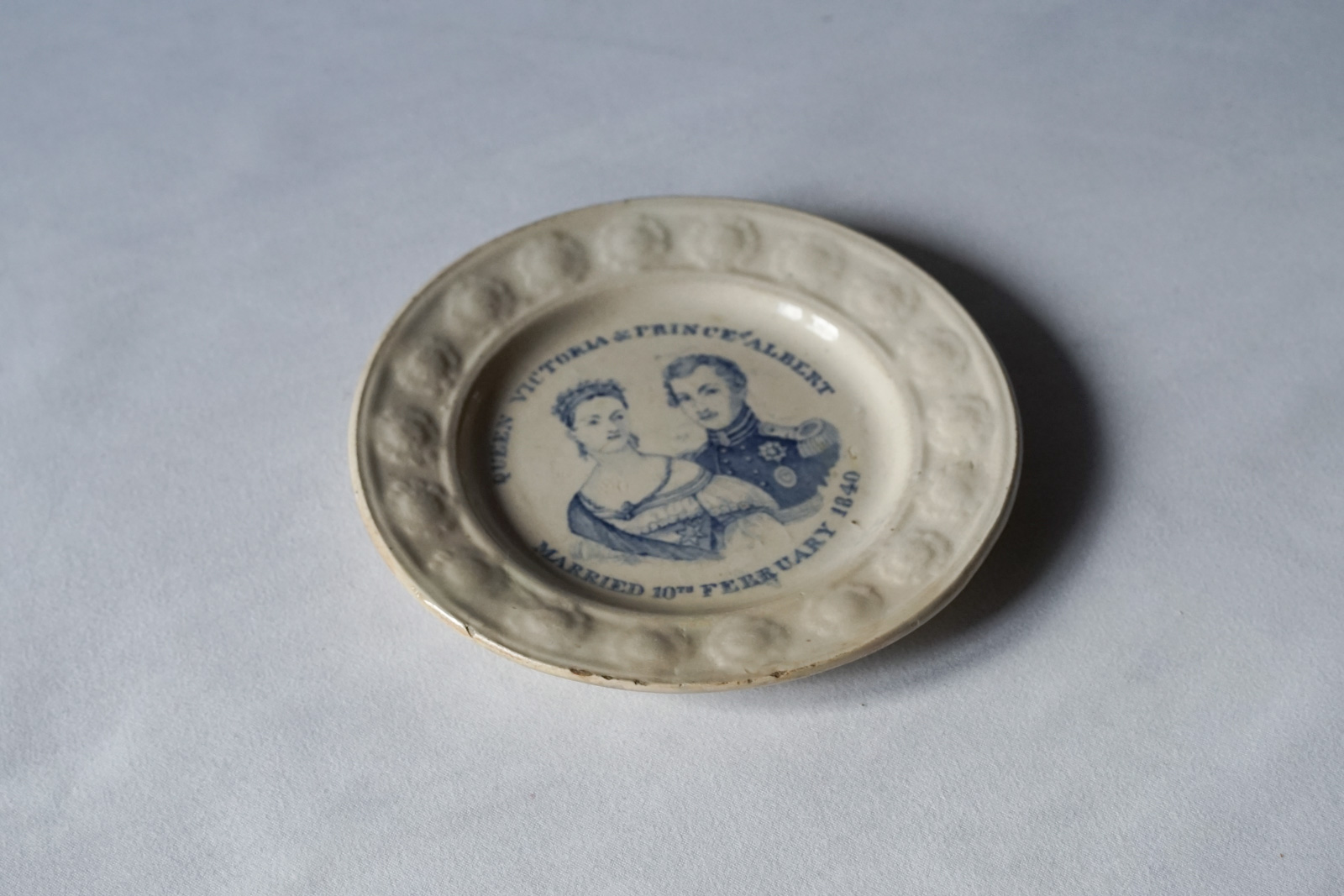 リムの花レリーフもかわいい ヴィクトリア女王&アルバート公成婚記念小皿 1840年のもの