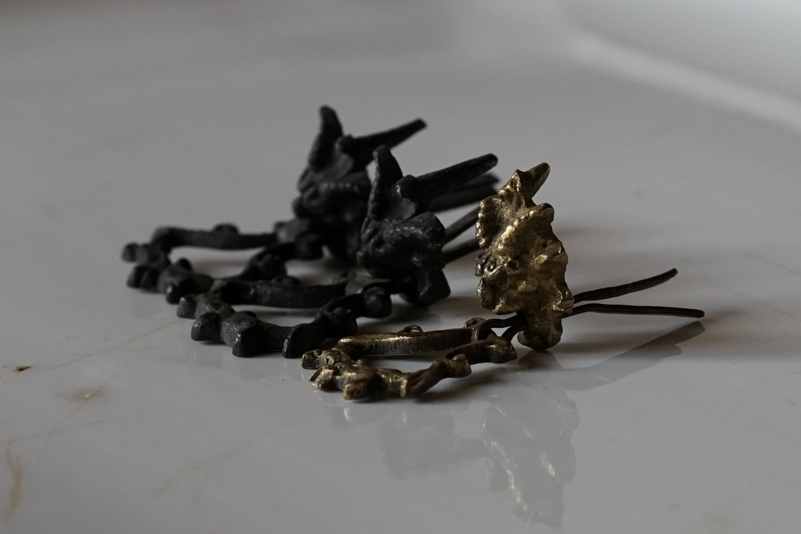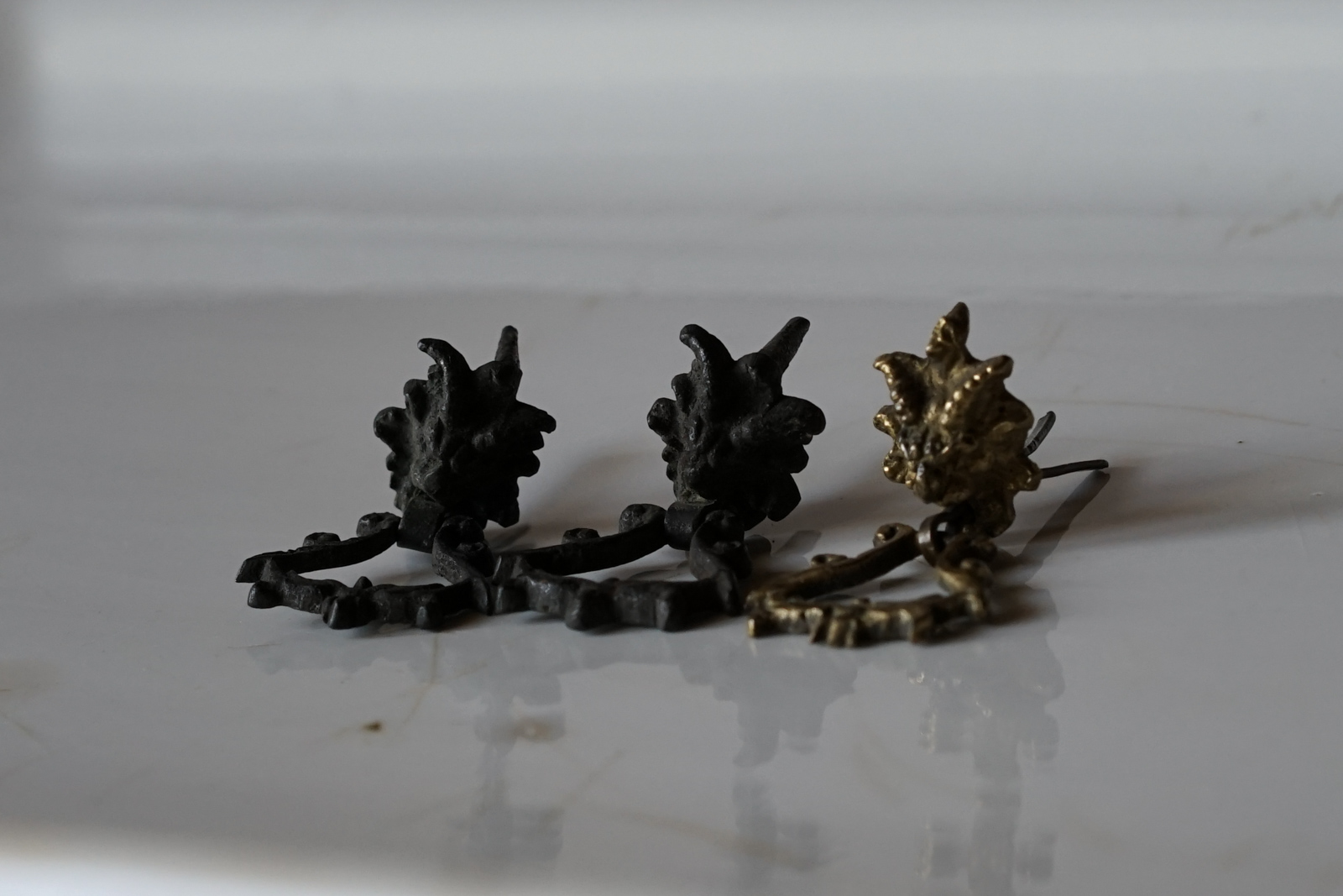 悪魔の顔付き 小さなメタルのポワニエ(取っ手)3個セット
