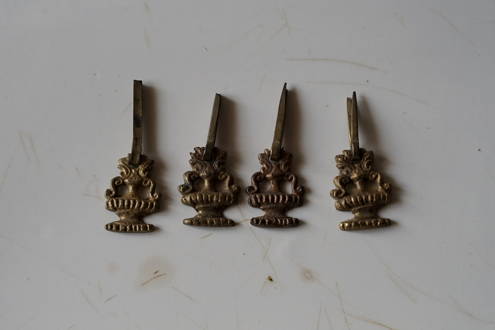 小引き出しに良さそうな 洒落た小さなメタルのポワニエ(取っ手)4個セット