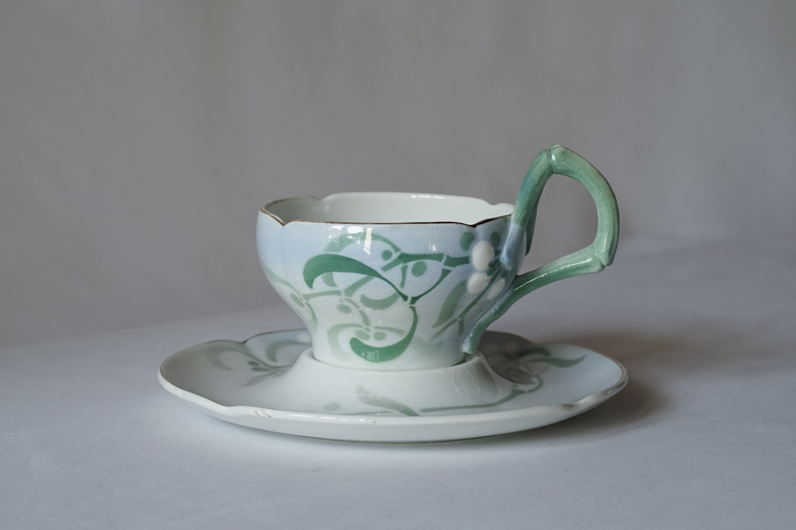 アール・ヌーヴォー エドモン・ラシュナルのやどりぎ陶器 カップ&ソーサー