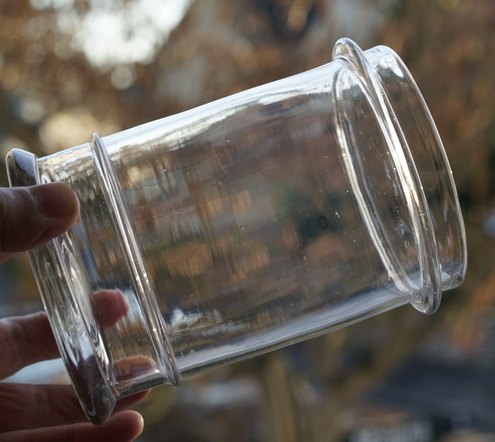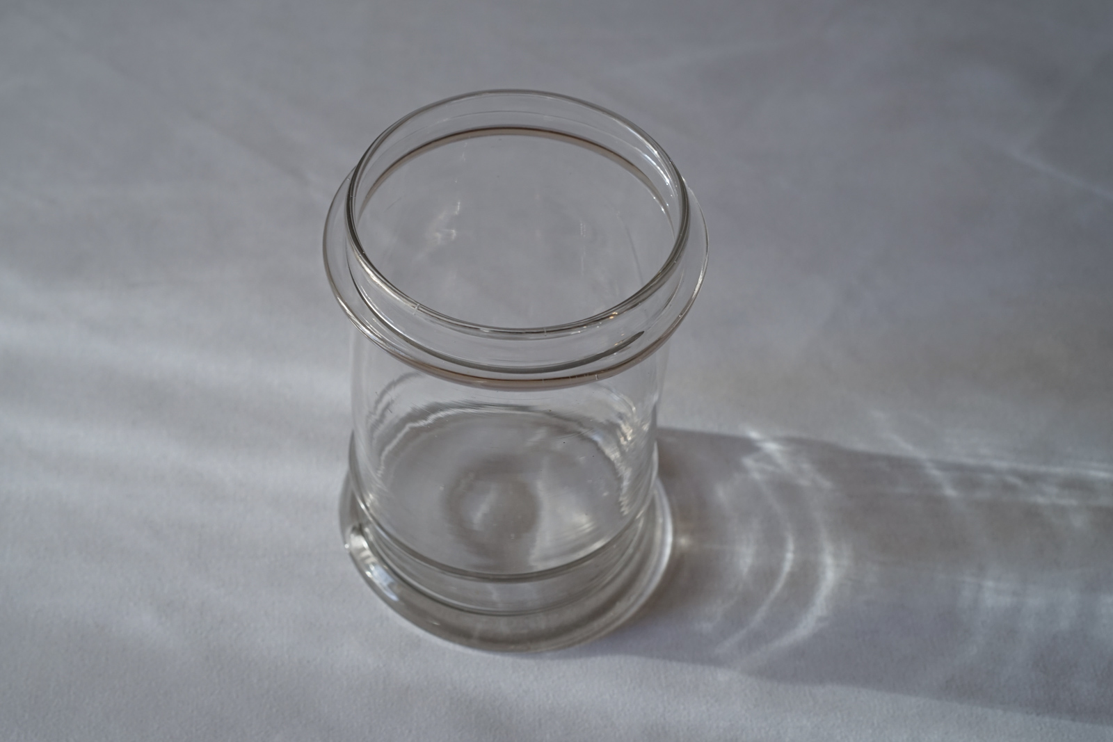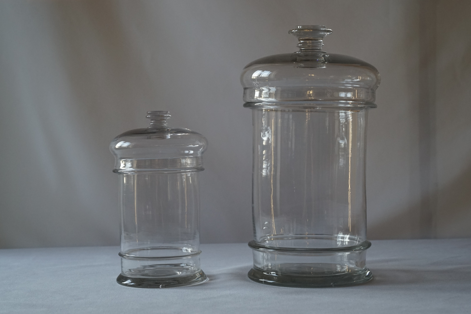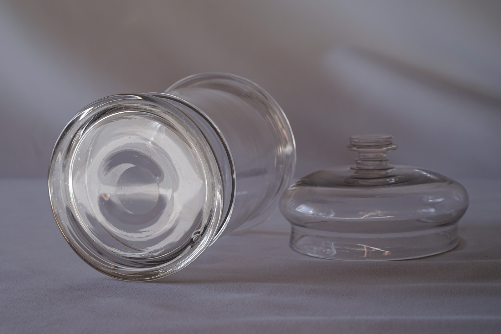 古いガラスの質感を味わいながら 使える蓋付ガラスポット かわいい小さなサイズです